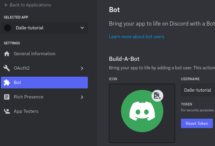 Similarly, you will want to obtain a new Discord bot key. From your bot’s page,